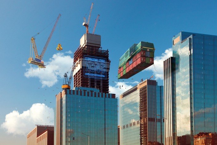 Кстати, в Астане будущего, по мнению художника, все еще продолжается стройка "Абу Даби Плаза".
