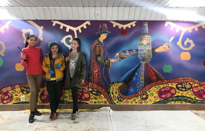 "Мы хотели что-то сделать для Алматы, и нам предоставили такую возможность. Мы проходили большой отбор, было очень много художников. При работе в "подземках" мы совместно с акиматом выбираем темы, решаем, какие будут эскизы. На стенах подземных переходов рисуем впервые", - говорит Айгерим Сабанчиева.