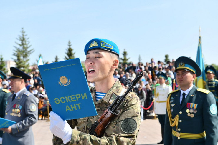 Новобранцы президентского полка "Айбын" приняли присягу на площади у монумента "Отан қорғаушылар" в Астане, передает Tengrinews.kz со ссылкой на "Хабар 24".
