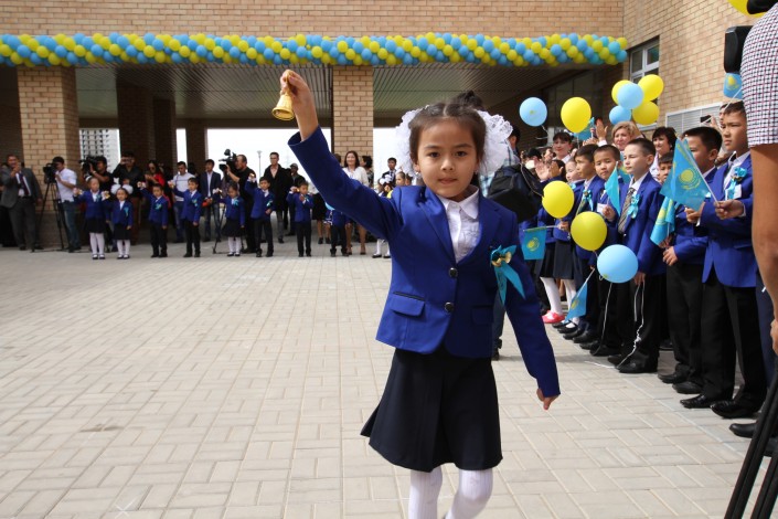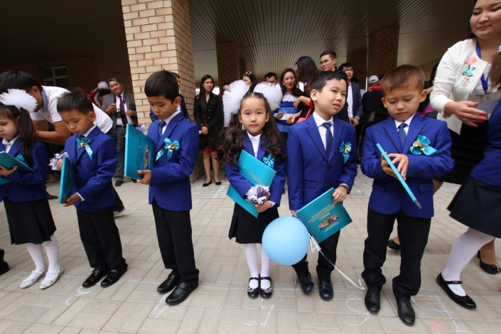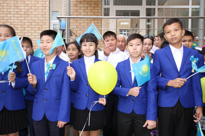 В этом году в первый класс пошли 340 тысяч маленьких казахстанцев. Каждый из них к первому учебному году в своей жизни получил подарок от имени Президента Казахстана Нурсултана Назарбаева - книгу "Mенің отаным - Қазақстан". Всего в Казахстане сегодня открыли свои двери 7,5 тысячи школ.