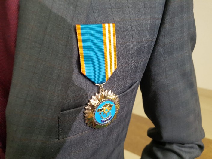 Школьника наградили нагрудным знаком и вручили подарок - смартфон. Министр пообещал Надиру Омаргазиеву выделить квоту на обучение в Академии МВД.