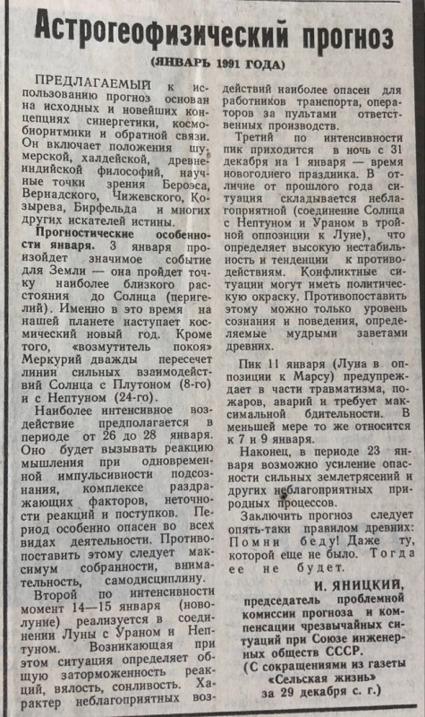 В 90-х появилось множество астрологов, экстрасенсов, целителей - люди верили им. Интерес был, и газеты стали публиковать "астрогеофизический прогноз".