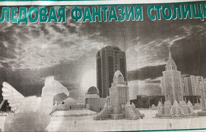 На первой полосе новогоднего "миллениального" выпуска - репортаж о ледовом городке в столице республики - Астане.