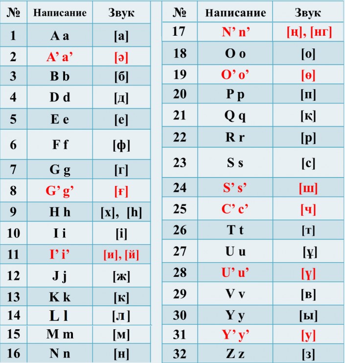 Отметим, что в новом варианте отсутствуют апострофы и появились акуты (штрихи над буквами). Изменено написание букв Ә, И, Й, Ғ, Ң, Ө, Ү, У на латинице, а также введены диграфы (sh, ch).