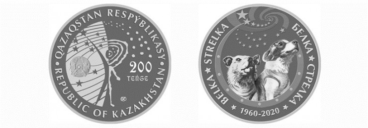 Эти монеты посвящены 60-летию полета в космос советских собак-космонавтов Белки и Стрелки с космодрома Байконур на корабле "Восток", сообщает Нацбанк.
