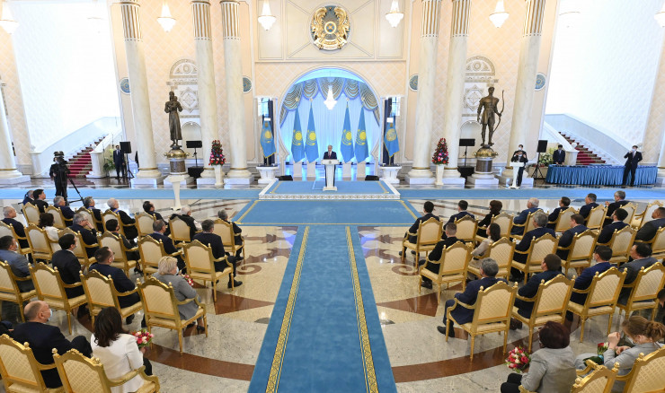 Касым-Жомарт Токаев наградил государственными наградами группу граждан за большой вклад в социально-экономическое и культурное развитие страны, активную общественную деятельность, личную самоотверженность, проявленную при спасении и защите граждан, помощь в обеспечении общественного порядка. В их числе представители производственной сферы, здравоохранения, бизнеса, деятели культуры и науки, спортсмены, волонтеры.
