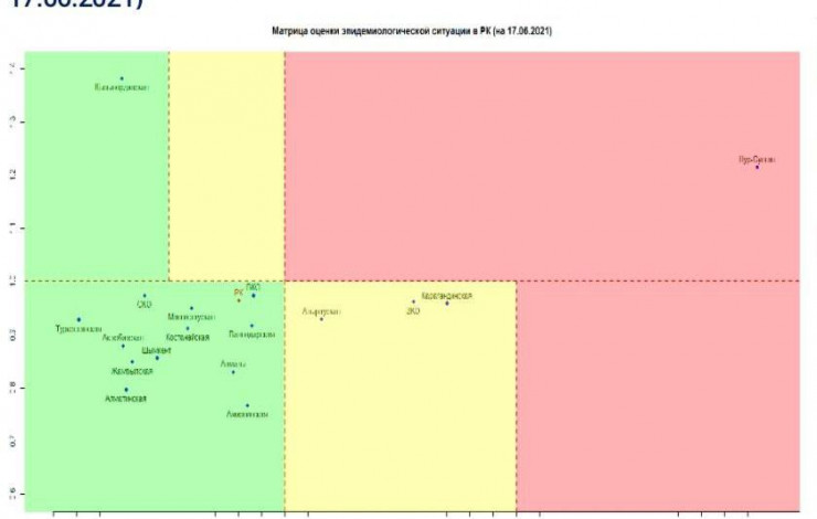 Согласно матрице оценки эпидемиологической ситуации в регионах Казахстана на 17 июня, в "красной" зоне находится Нур-Султан.