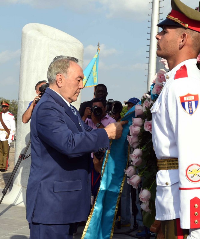 Кроме того, Глава государства принял участие в церемонии возложения венка к мемориалу национального героя Кубы Хосе Марти (поэт, писатель, публицист, революционер, лидер движения освобождения Кубы от Испании. - Прим. ред). По завершении церемонии Назарбаев осмотрел музей мемориала и оставил запись в книге почетных гостей.