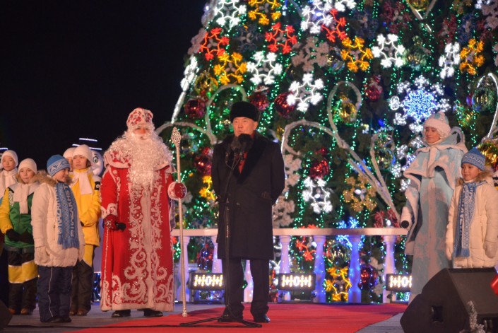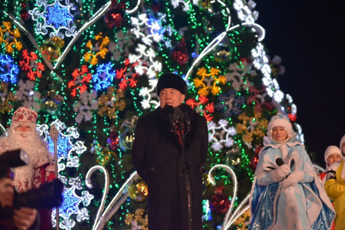 Нурсултан Назарбаев зажег главную новогоднюю елку в Астане