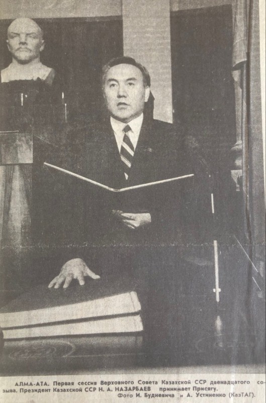 "Торжественно клянусь верно служить народу нашей многонациональной республики, строго следовать Конституции Казахской Советской Социалистической Республики, гарантировать права и свободы граждан, добросовестно выполнять возложенные на меня высокие обязанности Президента Казахской Советской Социалистической Республики", - именно так звучал текст присяги Нурсултана Назарбаева народу Казахстана, опубликованный в 97-м номере "Казахстанской правды" в среду, 25 апреля 1990 года.