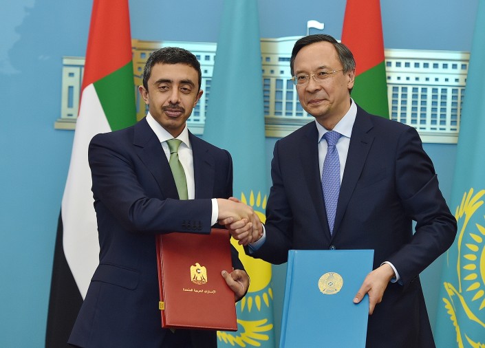 23 мая министр иностранных дел Казахстана Кайрат Абдрахманов провел в Астане переговоры с министром иностранных дел и международного сотрудничества Объединенных Арабских Эмиратов (ОАЭ), шейхом Абдаллой бен Заид Аль Нахаяном. Главным результатом встречи стало подписание документа, предусматривающего освобождение от виз граждан двух государств, владельцев общегражданских паспортов, на срок до 30 дней. Об этом сообщает пресс-служба МИД Казахстана.