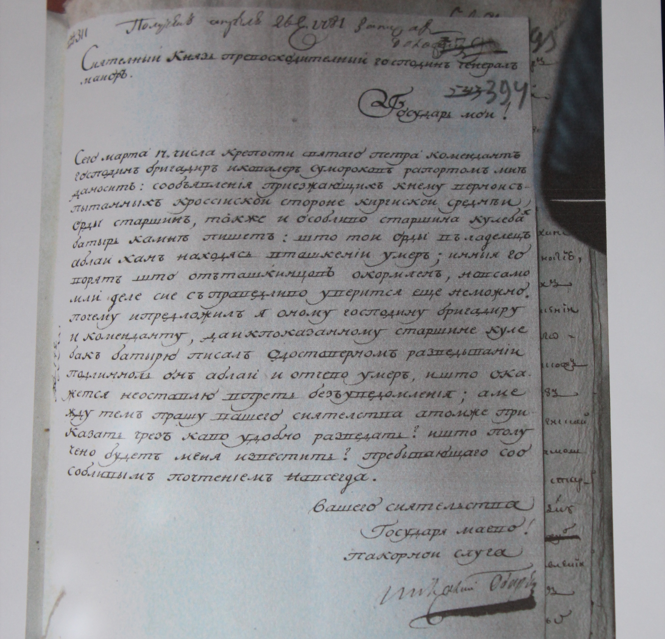 На фото приказ Ее Величества государыни императрицы Екатерины Алексеевны от 22 декабря 1777 года.
