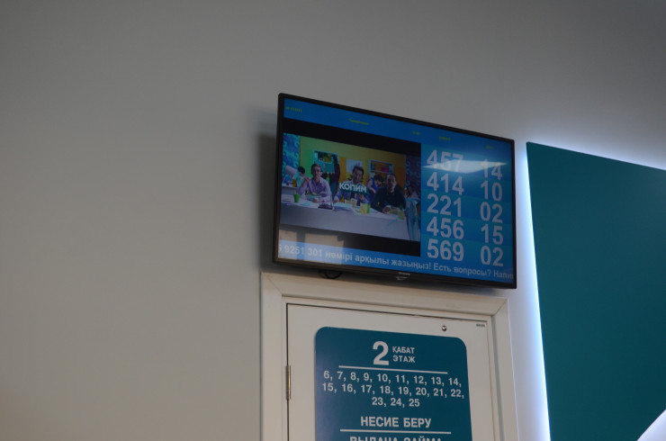 В филиале на улице Тулебаева к обеду очередь уже спала. Некоторые клиенты говорят, что ждали, когда их номер высветится на табло в течение двух-трех часов. Сотрудники банка как могут успокаивают уставших клиентов и разъясняют им ситуацию.
