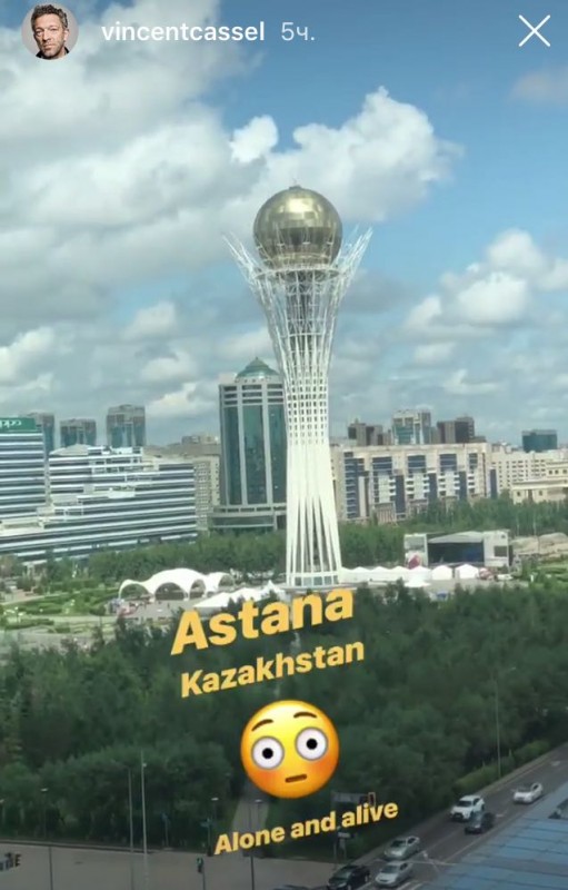 В своем Instagram в stories звезда опубликовал фотографию с видом на "Байтерек". "Астана, Казахстан. Одинокий и выживший", - подписал он фотографию.