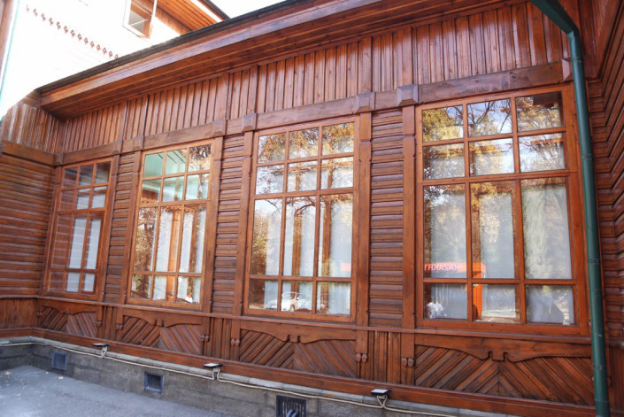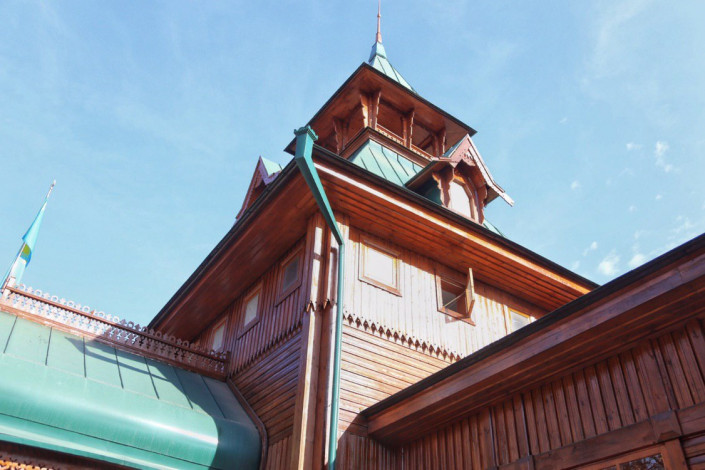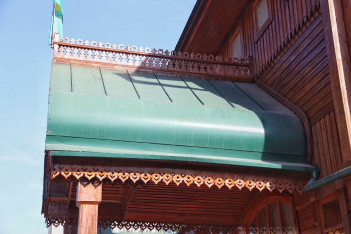 Ғимарат - "Ропетовский" стиліндегі ағаш сәулет өнерінің ерекше үлгісі.