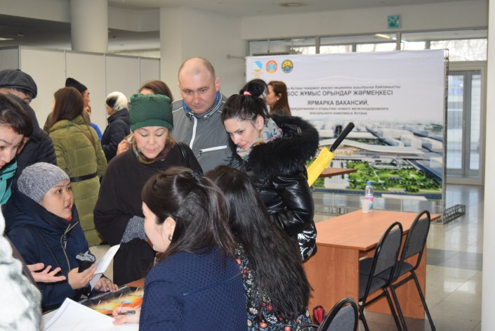 В Астане состоялась ярмарка вакансий, приуроченная к открытию нового железнодорожного вокзального комплекса Астаны. Организаторами мероприятия выступили АО "НК "Қазақстан темір жолы", акимат Астаны и городской Центр занятости населения.