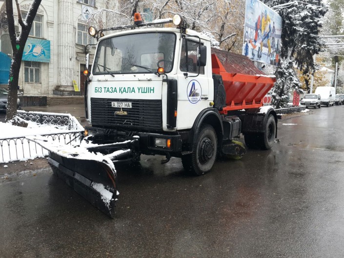 Из 390 авто 112 составляют спецмашины, которые разбрасывают песок. Работы по посыпке песко-хлоридной смесью дорог производились южнее улицы Толе би. За время снегопада использовано 1200 тонн данной смеси. Отметим, что в помощь спецмашинам привлечены 570 дорожных рабочих.