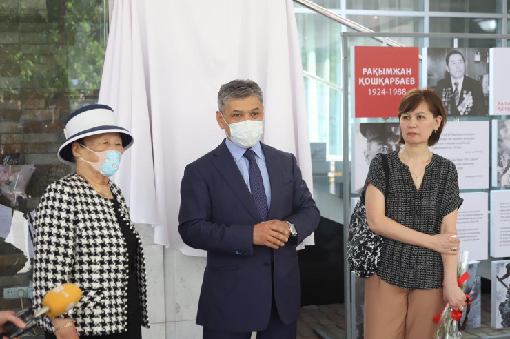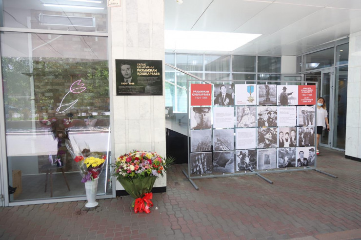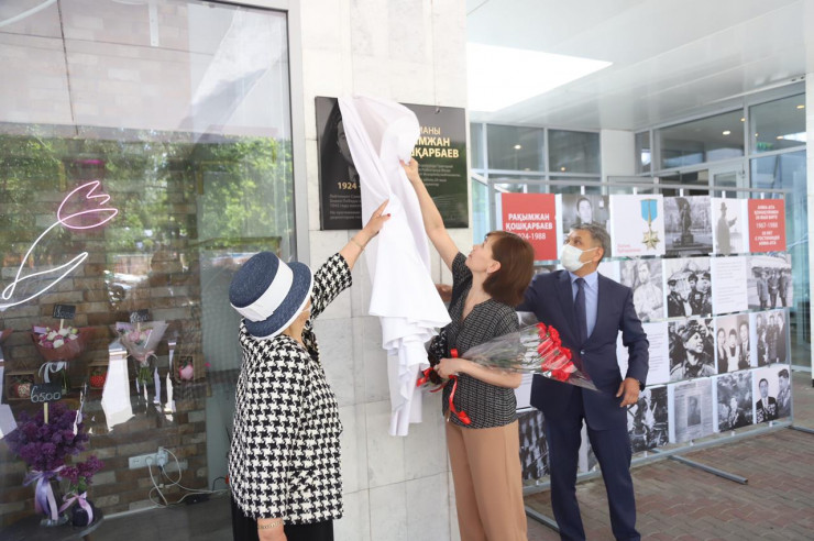 Мемориальная доска в память о Рахымжане Кошкарбаеве впервые была установлена в мае 2015 года у входа в гостиницу "Алматы". Однако два года спустя фасад отеля реконструировали и доску убрали. И вот в день 76-й годовщины Великой Победы ее вернули на место, но уже в обновленном варианте.