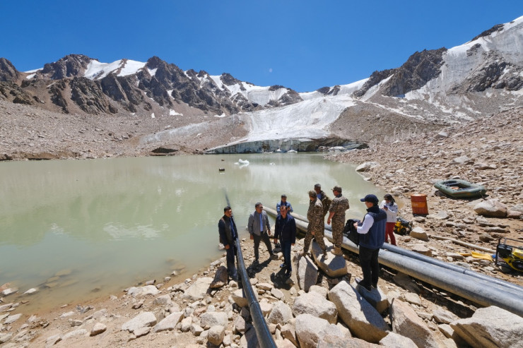 Всего к превентивным работам по спуску воды из моренных озер приступили 40 человек, по необходимости будут задействованы бульдозеры, планируется расчистка и углубление эвакуационных каналов.