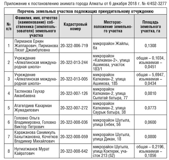 Опубликован список 45 участков, которые изымут для госнужд в Алматы © almaty.tv
