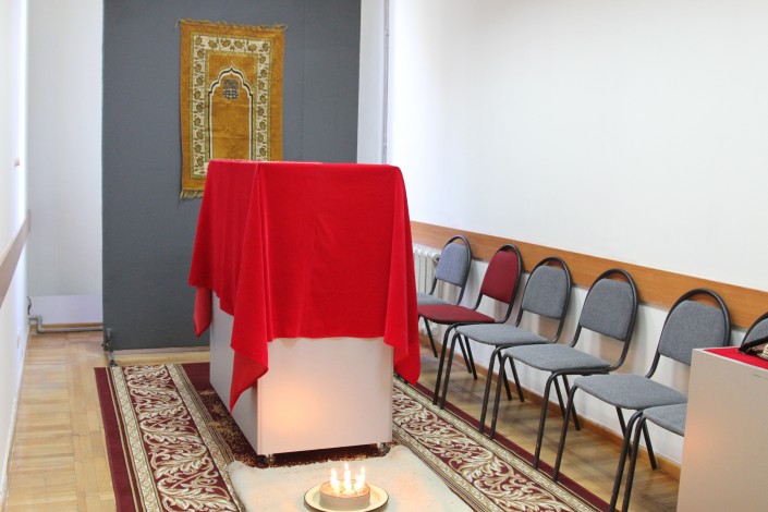 Как стало известно, для останков в Музее выделили специальную комнату. Контейнер на колесиках установили по центру комнаты, застелили его красным полотном и рядом зажгли свечи.