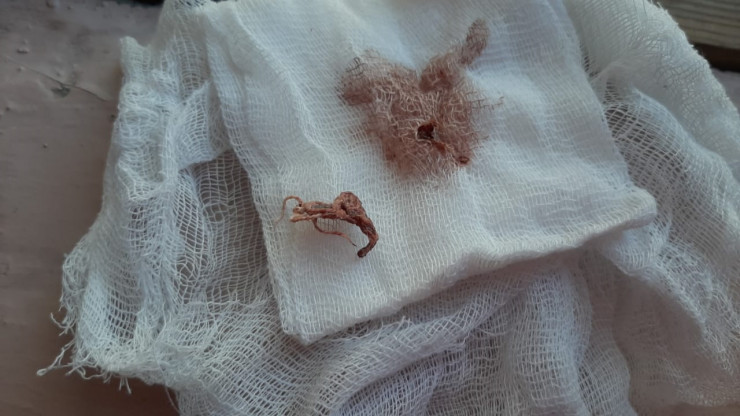 48-летний Талгат Елибаев страдает сахарным диабетом. По словам мужчины, в 2019 году он впал в кому и был госпитализирован в жезказганскую больницу, где его прооперировали и оставили в нем кусочек бинта. По словам пациента, этот кусок на протяжении полутора лет мучал его, доставляя дискомфорт и сильные боли. В итоге недавно он поехал в столицу, где был снова прооперирован. Врачи, с его слов, извлекли из него остатки инородной ткани.