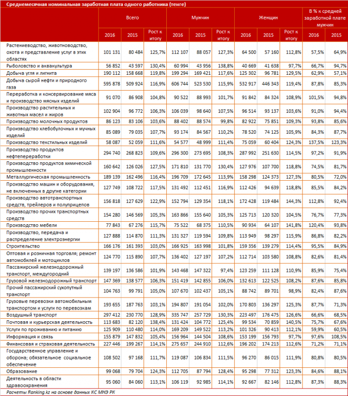 Мужчины получают больше почти во всех сферах деятельности, но есть и исключения. Например, значительный перевес среднемесячных номинальных зарплат в пользу женщин отмечен в сфере производства текстильных изделий (на 37,5 процента).
