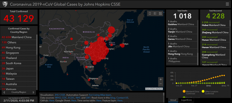 На 11 февраля в мире коронавирусной инфекцией заражено более 43 тысяч человек. Число погибших превысило тысячу человек. Подавляющее большинство жертв коронавируса - жители Китая, один смертельный исход зафиксирован на Филиппинах.