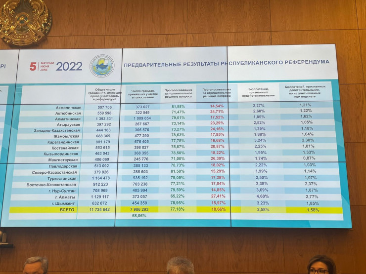 В Центральной комиссии референдума озвучили предварительные итоги республиканского референдума, передает корреспондент Tengrinews.kz.