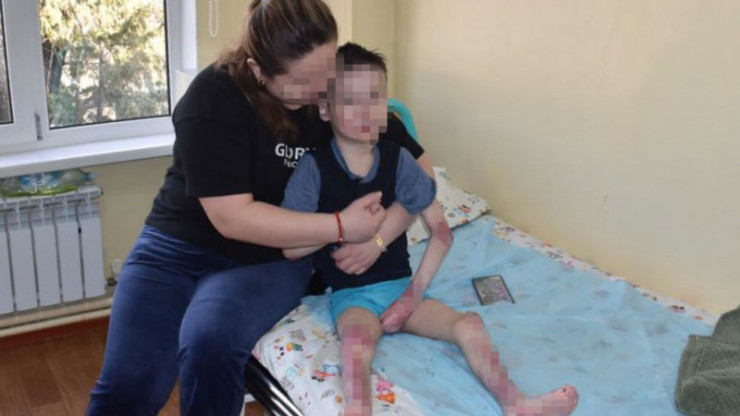 Второй пациент - 6-летний Бекнур. Последствия болезни у малыша выражены более серьезно. Руки и ноги почти постоянно забинтованы. Сама операция сложна тем, что таким детям крайне затруднительно поставить наркоз. Из-за того, что ротовая полость открывается не полностью, возникает сложность в проведении интубации легких.