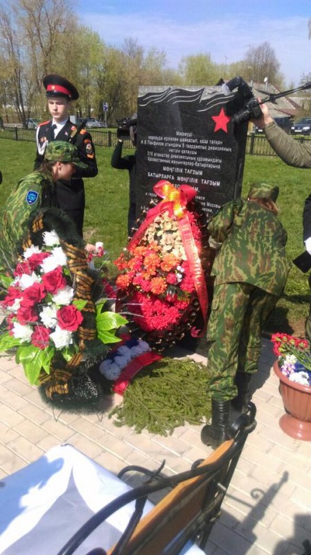 "Памятник воинам-казахстанцам, легендарным гвардейцам-панфиловцам торжественно открыт на центральном воинском захоронении города Волоколамска. Здесь же прошел митинг посвященный памяти бойцов 8-ой гвардейской дивизии им. Панфилова. У подножия памятника бойцы павлодарского поискового отряда заложили символичную капсулу с горстью казахстанской земли", - сообщил Дмитрий Попазов