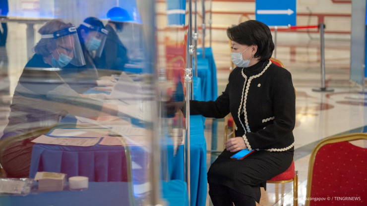 Министр культуры и спорта Актоты Раимкулова тоже уже проголосовала.