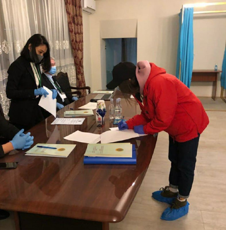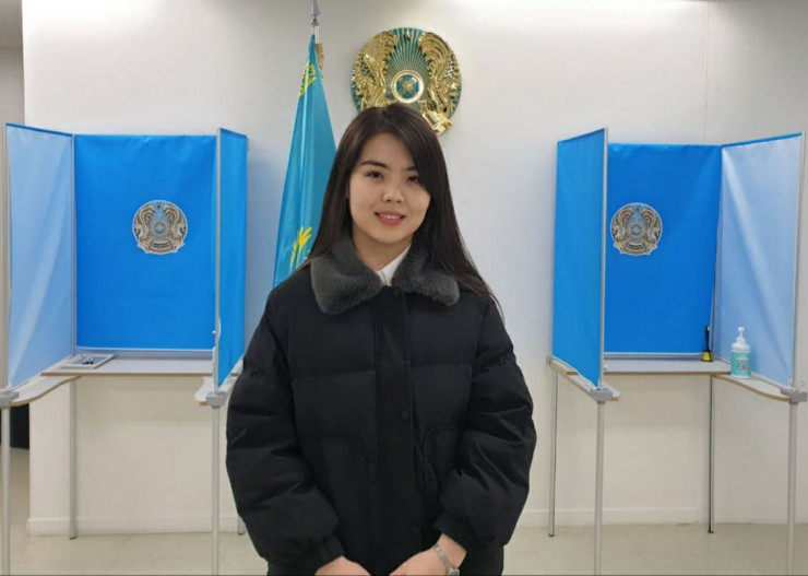 По данным МИД, самой первой на парламентских выборах проголосовала студентка университета Коре в Южной Корее Аделина Алпамыс.