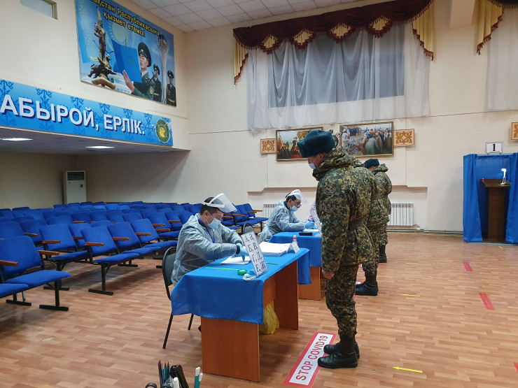 А в Шымкенте первыми проголосовали солдаты воинской части 6506 Нацгвардии. Этот избирательный участок открылся в 6.00. По списку здесь 821 избиратель, причем 40 процентов из них - это те, кто будет голосовать впервые в жизни. Эти 18-летние ребята служат только полгода.