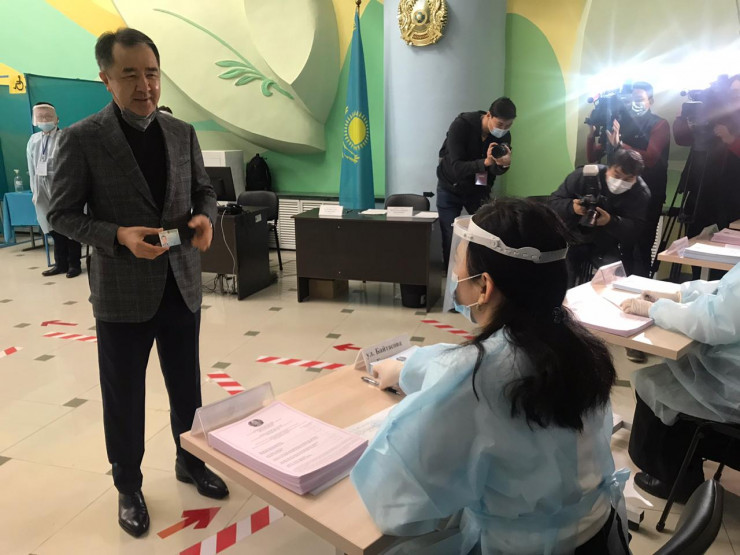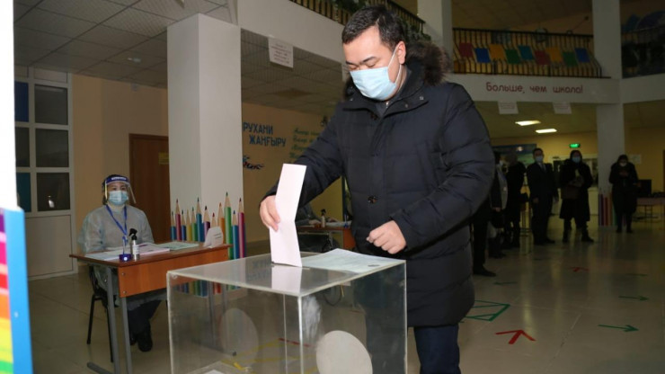 Премьер-министр Аскар Мамин проголосовал на избирательном участке в здании концертного зала "Астана".