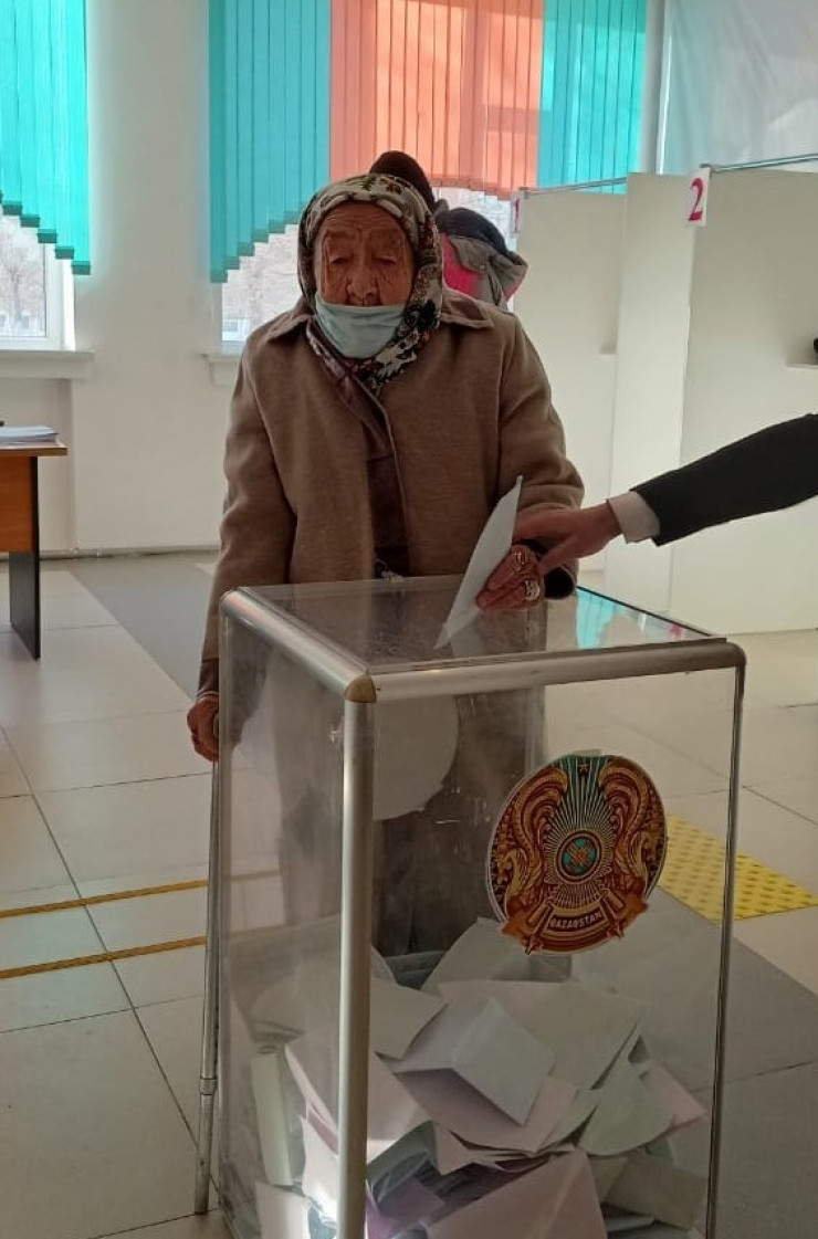 В Кызылординской области 102-летняя Бати Аманбаева пошла на свой избирательный участок и сделала свой выбор. Бабушка воспитала семерых детей, 25 внуков и 14 правнуков.