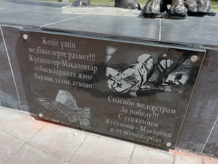 "Идея возникла после поездки в Россию, в Ессентуки. Когда мы пошли там гулять в Парк Победы, первое, что бросилось в глаза и взрослым, и детям, - памятник медицинской сестре. Дети говорят: "Аташка, сделай тоже такой памятник". И сразу пришло осознание того, сколько солдат медсестры спасли в годы войны. Даже сейчас, в мирное время, медсестры тоже скольким людям помогают", - рассказывает Бек Жусупов.