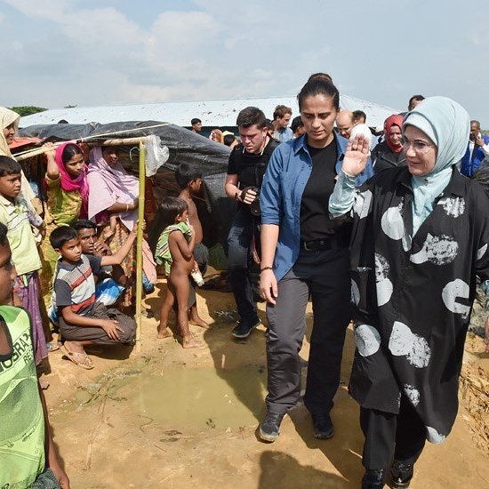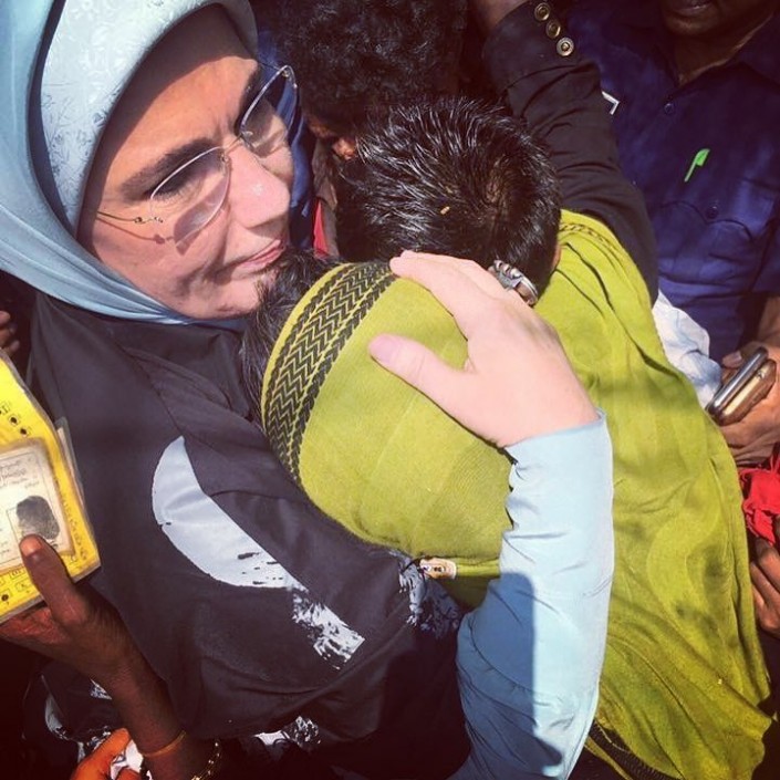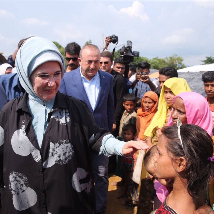 Накануне его супруга и сын, а также турецкие министры посетили лагерь беженцев мусульман-рохинджа в Бангладеше. Эмине Эрдоган призвала международное сообщество принять меры для прекращения насилия против мусульманского населения штата Аракан (Ракхайн) в Мьянме.