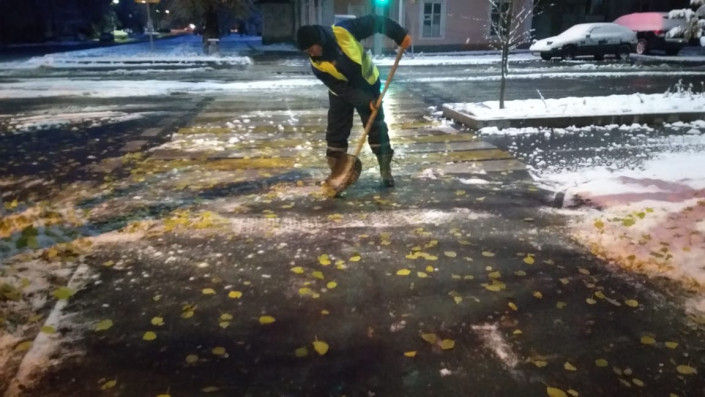 С утра 7 ноября на дороги Алматы в связи с первым снегом выведено 498 единиц техники, в том числе 174 пескоразбрасывателя и 1688 дорожных рабочих.