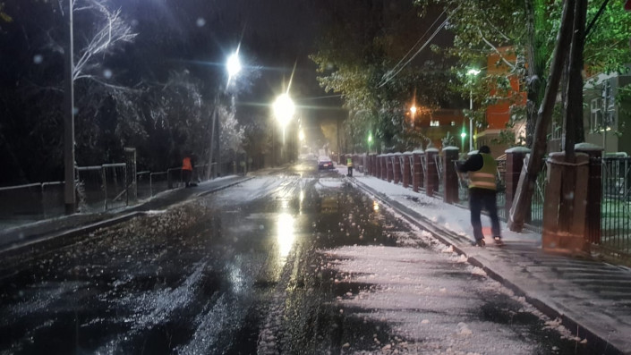 Снег в Алматы пошел накануне, 6 ноября, около 23:30. Прогнозируется, что осадки продолжатся в первой половине дня 7 ноября.