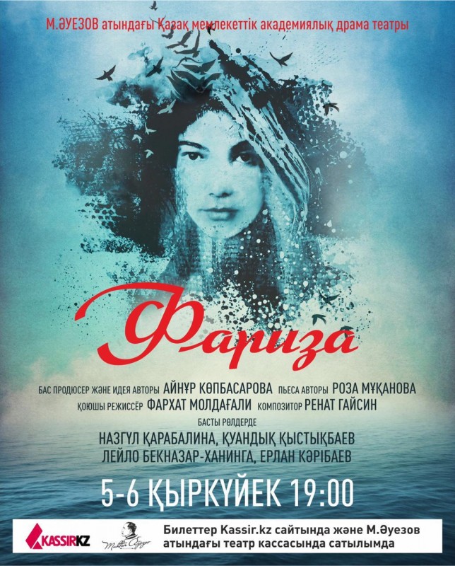 Показ пьесы "Фариза" пройдет 5-6 сентября в 19.00 на сцене Казахского государственного академического театра драмы в Алматы. Билеты можно приобрети в кассах театра. Премьеры также запланированы в Нур-Султане, Атырау и Москве.