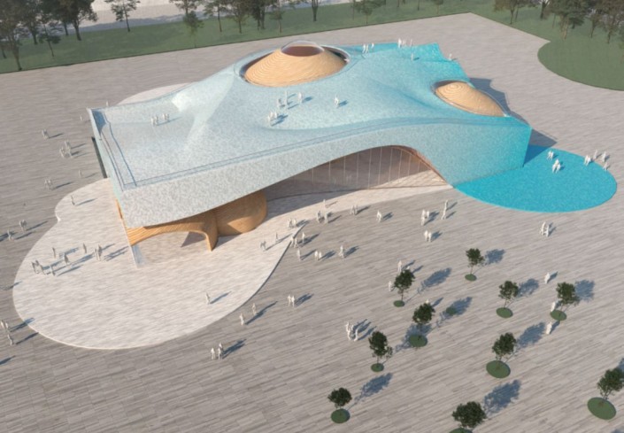 Туристический визит-центр. Спонсором выступает Жамбылская область. Площадь - 2 200 квадратных метров.