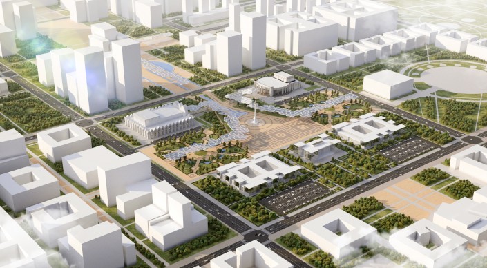 Центр "Ұлы Дала Елі" (Музей тюркского мира, музей ханов и биев). Его построят ERG, Kazminerals и BI Group. Площадь музея - 7 760 квадратных метров.