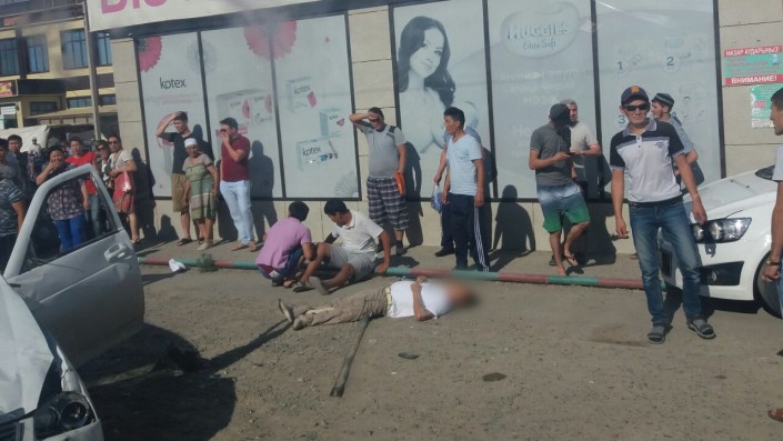 Появилось видео ДТП в Атырау: Автомобиль перевернулся и придавил пешехода Кадр из видео