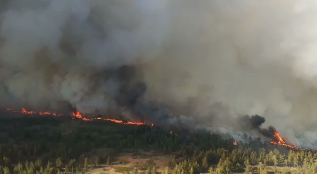 Появилось видео лесного пожара в Карагандинской области