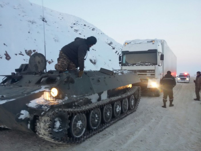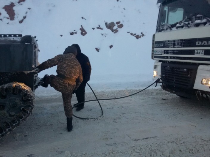 Из-за погодных условий на автодороге Алматы - Ташкент застряли два рейсовых автобуса, следовавших по маршруту "Шымкент - Алматы", а также 13 большегрузных автомашин, которые тоже не смогли вырваться из снежного плена самостоятельно. Для их извлечения была задействована спецтехника.