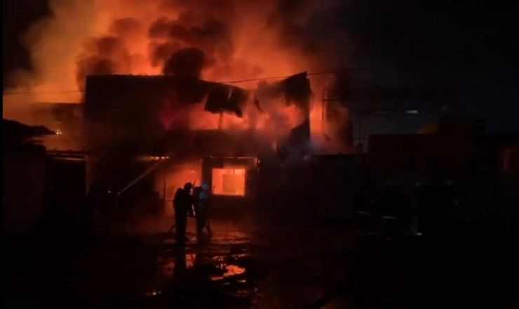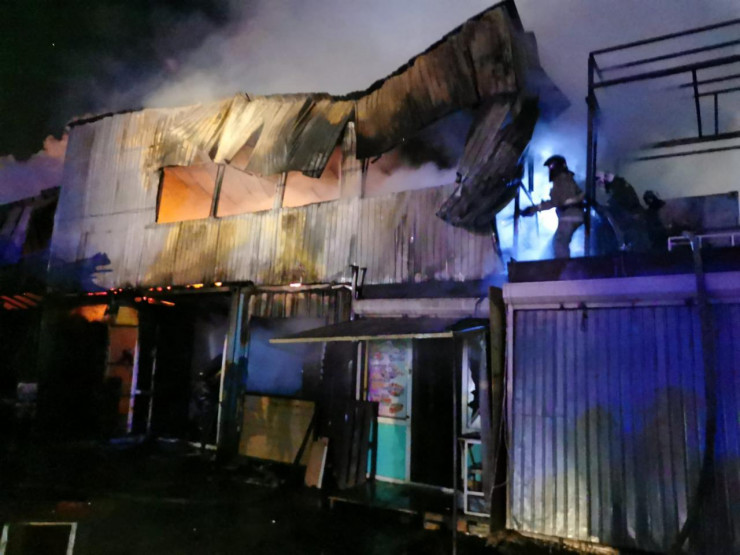 Пожар уничтожил три кафе на рынке "Алтын Арба" в Караганде Фото ДЧС Карагандинской области
