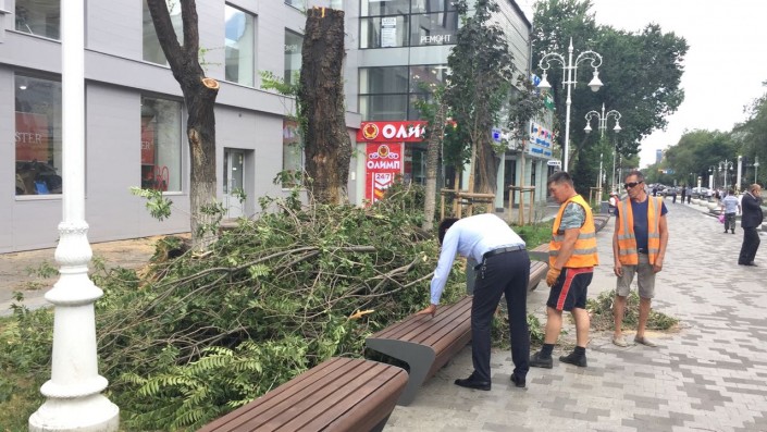 "В настоящее время сотрудниками местной полиции города Алматы задержаны лица, осуществившие незаконный спил деревьев. С их слов, собственники помещения по адресу улица Жибек жолы, 104 ввели их в заблуждение, уверяя, что есть все разрешительные документы на спил деревьев. В связи с нахождением собственника помещения за границей был задержан представитель собственника, в отношении которого принимаются административные меры", - сообщили в акимате.