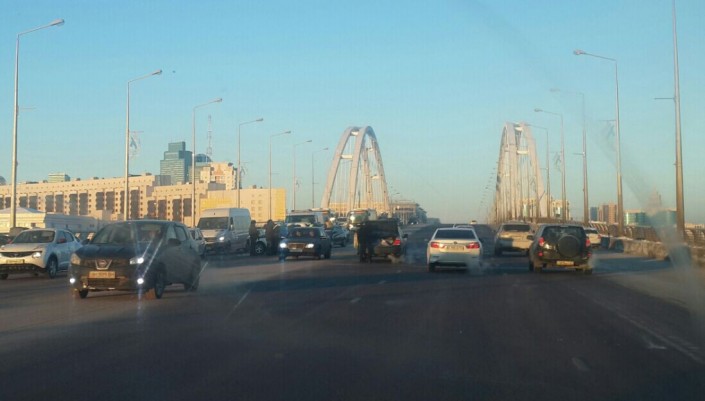 Сегодня утром на мосту М1 по улице Сарайшык столкнулись три автомобиля. Установлено, что водитель автомашины Audi, следуя по мосту М1 со стороны проспекта Бауыржана Момышулы в сторону улицы Туркестан, не справился с управлением.