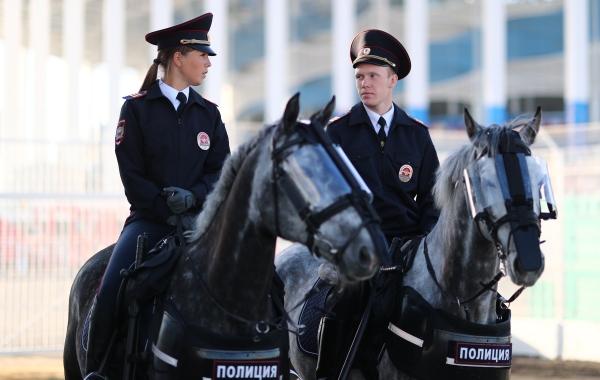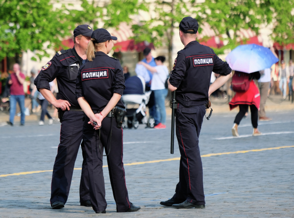 Полицейские в России носят темно-синюю, реже черную форму. Рубашки - белые или голубые.